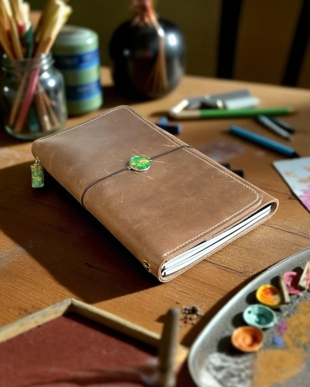 Add a personal touch to your journal with our handmade resin charms. Each charm is completely unique and threads onto the front of your journal for a pop of colour.